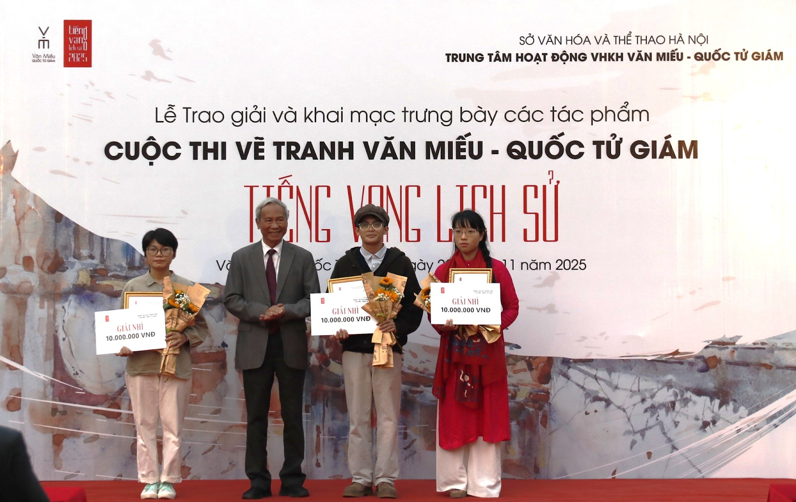 Chiều 23/11/2025, tại Di tích Văn Miếu – Quốc Tử Giám, đã diễn ra Lễ trao giải và khai mạc triển lãm Cuộc thi vẽ tranh “Tiếng vang lịch sử” 2025. Triển lãm trưng bày 80 tác phẩm vào vòng chung kết và tôn vinh 18 tác phẩm xuất sắc nhất của cuộc thi. Sự kiện mang đến một không gian nghệ thuật nơi di sản được tái hiện qua góc nhìn trẻ trung, sáng tạo của thế hệ họa sĩ hôm nay.