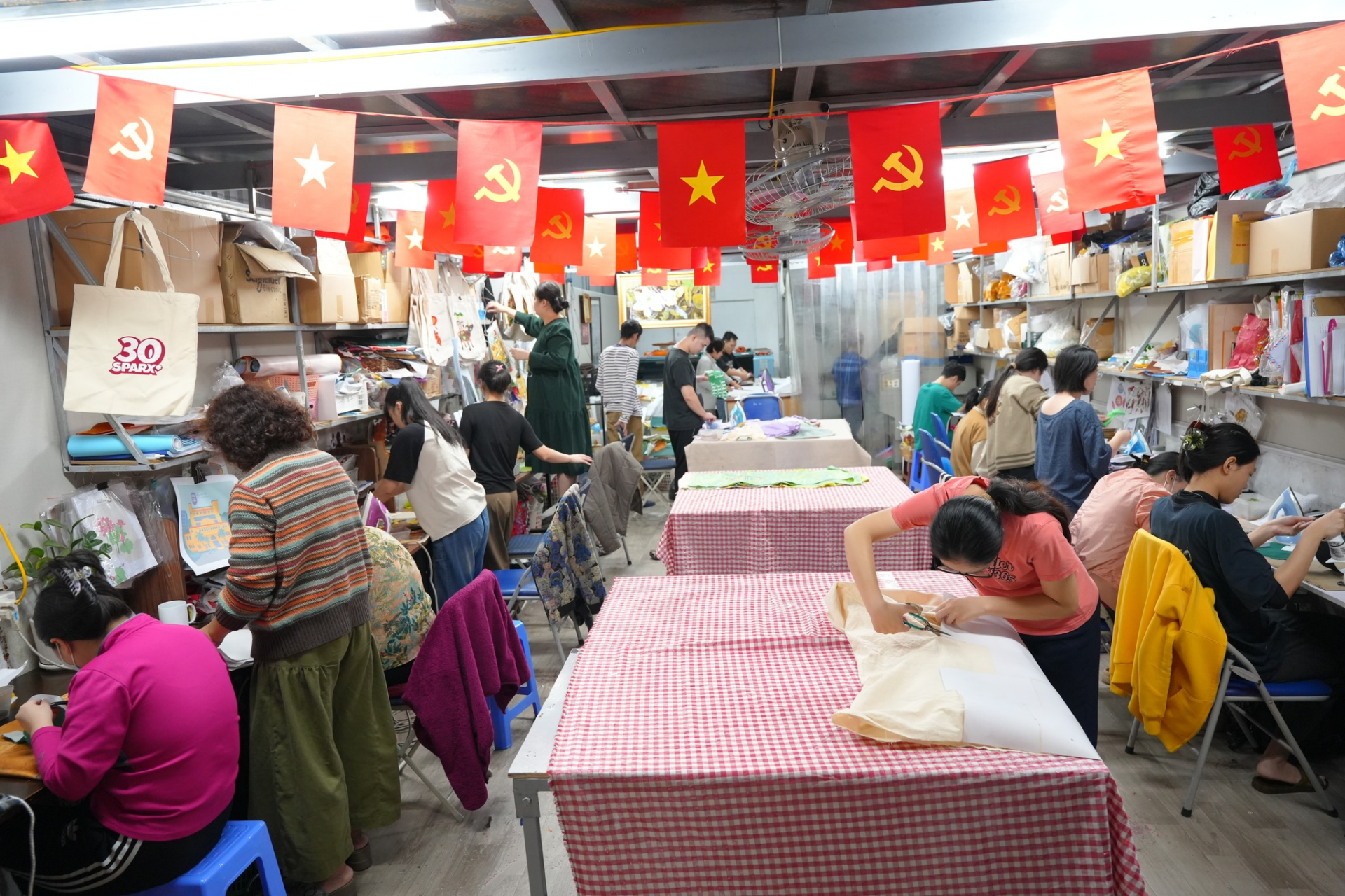 VỤN Art chuyển thể tranh dân gian Việt Nam và thế giới bằng kỹ thuật ghép vải, sử dụng những mảnh lụa vụn Vạn Phúc và vải thừa từ các nhà may. Từ những nguyên liệu tưởng chừng bị bỏ đi, qua sự khéo léo, cần cù và sáng tạo của người thợ khuyết tật, các tác phẩm tranh vải mang đậm bản sắc văn hóa dân tộc dần được hình thành.