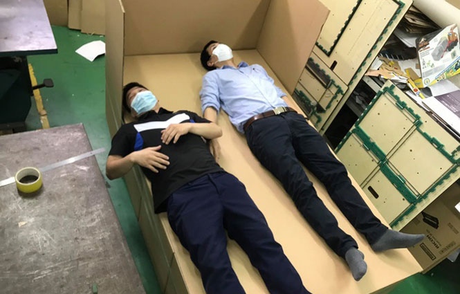 Áo làm mát và giường carton hỗ trợ chống dịch Covid-19