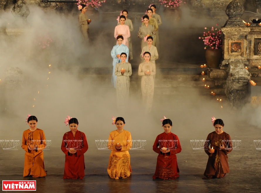 ![]() Trình diễn trang phục áo dài tại Festival Huế năm 2014. Ảnh: Thanh Giang |