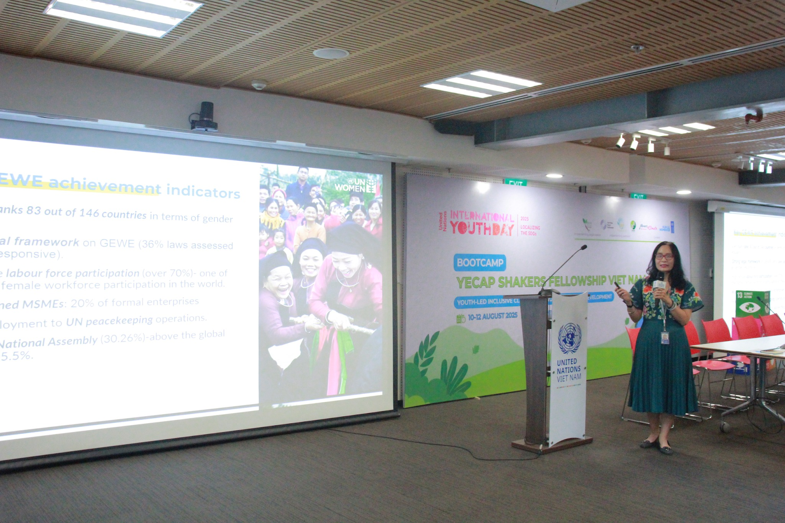 Chương trình Phát triển Liên Hợp Quốc (UNDP) và Cơ quan Liên Hợp Quốc về Bình đẳng giới và Trao quyền cho Phụ nữ (UN Women) đã phối hợp tổ chức tọa đàm “Thúc đẩy phát triển con người qua các giải pháp khí hậu bao trùm do thanh niên dẫn dắt” tại Tòa nhà Xanh Một Liên Hợp Quốc, Hà Nội.