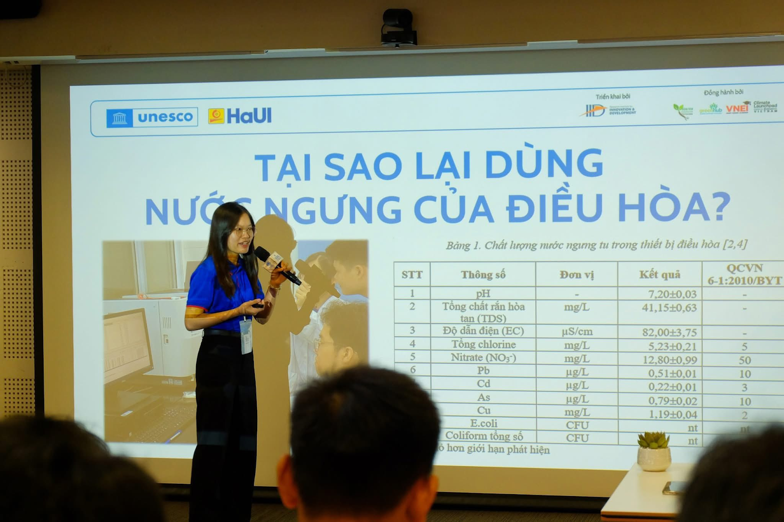 Song song tọa đàm, tinh thần đổi mới tiếp tục được khẳng định qua vòng Pitching của Top 10 UNESCO Water Challenge 2025 – cuộc thi tìm kiếm các sáng kiến giải quyết thách thức về nước. Từ gần 100 đề xuất trên toàn quốc, 10 đội thi tiềm năng đã trình bày các giải pháp đột phá trước hội đồng chuyên gia: từ lọc nước biển, AI giám sát chất lượng nước, xử lý nước phèn đến tái sử dụng nước điều hòa và chiến dịch truyền thông bảo vệ tài nguyên nước.