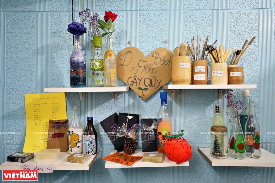 ![]() Những sản phẩm hanmade độc đáo được các tình nguyện viên tự tay làm để bán gây quỹ duy trì thư viện. Ảnh:Công Đạt/VNP |