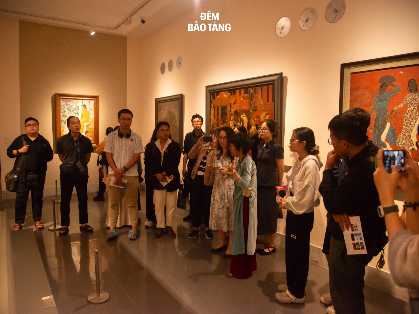 Trong ánh sáng ấm áp của buổi tối, khách tham quan có thể tự do khám phá hệ thống trưng bày của bảo tàng, thưởng lãm các bộ sưu tập hiện vật quý, trong đó có 9 bảo vật quốc gia, cùng những tác phẩm tiêu biểu của mỹ thuật Việt Nam hiện đại và truyền thống. Ứng dụng thuyết minh tự động iMuseum VFA hoạt động đầy đủ trong chương trình, giúp người xem tiếp cận thông tin đa tầng và trực quan.