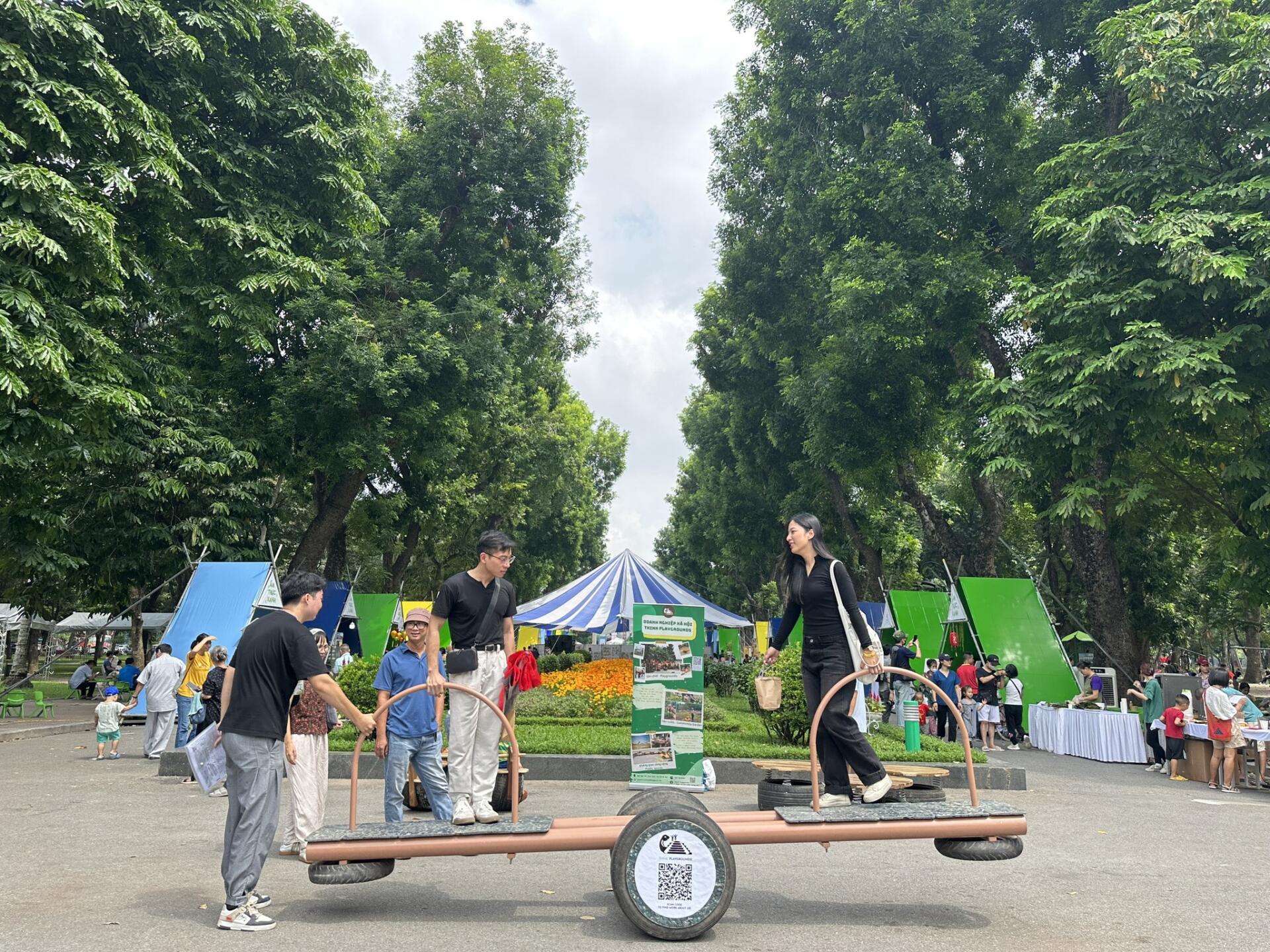Cụ thể, tại không gian vui chơi của Think Playgrounds, người tham gia sẽ được trải nghiệm các thiết bị vui chơi được thiết kế độc đáo từ vật liệu là lốp xe ô tô cũ, tấm nhựa tái chế…, hứa hẹn sẽ mang đến môi trường phát triển tuyệt vời nhất cho trẻ em, truyền cảm hứng cho các sáng kiến cải tạo không gian công cộng tại các thành phố ở Việt Nam.