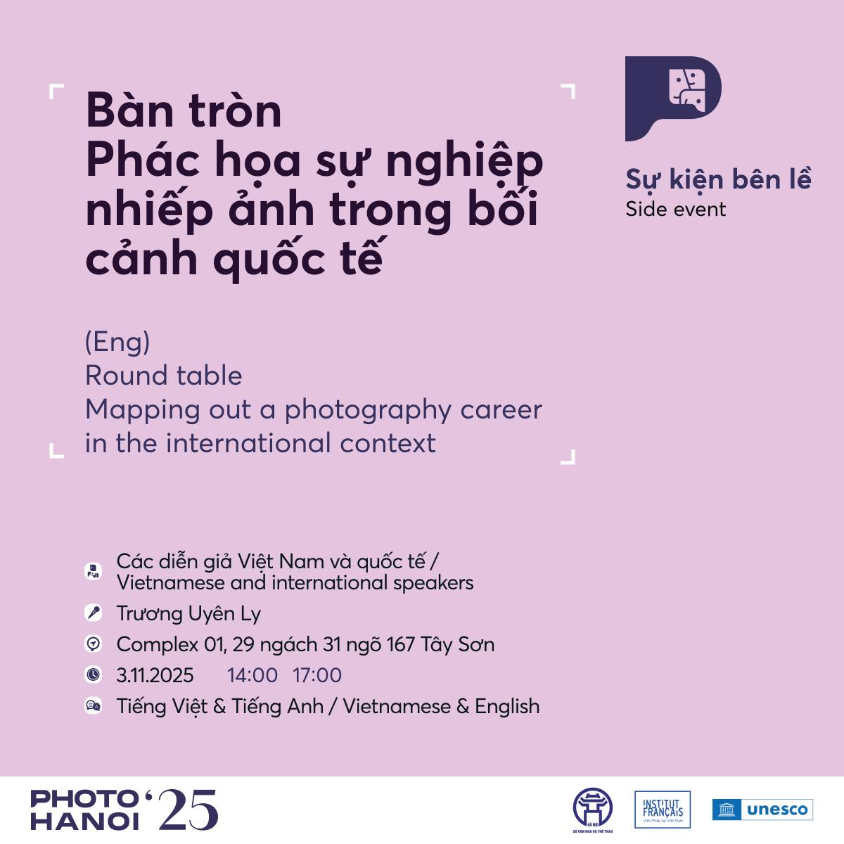 Chuỗi tọa đàm tại Complex 01 mở đầu tháng sự kiện, quy tụ hơn 30 diễn giả Việt Nam, châu Á và châu Âu. Các cuộc thảo luận diễn ra trong ba buổi liên tiếp, từ 03 đến 07/11, cung cấp cái nhìn toàn cảnh về sự nghiệp nhiếp ảnh, hệ sinh thái hỗ trợ quốc tế và những biến động của thực hành hình ảnh trong thời đại AI.