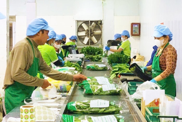 Pre-processing and packaging of clean fruit and vegetable products at Chúc Sơn Clean Fruit and Vegetable Cooperative. Photo: Hanoi Moi