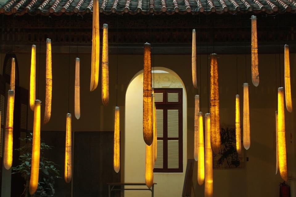 “Dai The” is a work that was first exhibited at the “Xem Dem (Watch the Night)” exhibition in Manzi in the summer of 2020. The work was inspired by field trips of Tay and Dao ceremonies by Architect Nguyen Ha (ARB Architecture Company) and artist Nguyen Duc Phuong (Phuong Giò). The appearance of the “thẻ (cards)” is reminiscent of the Khảo Cán or Lệnh bài of the priests – a passport for the priests to connect them with god.