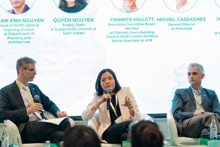 Trong phiên thảo luận chủ đề “Lộ trình phát triển công trình xanh tại Việt Nam” tại sự kiện GEFE 2024, các doanh nghiệp trong đó có Saint-Gobain đều đồng tình: công trình xanh là xu hướng tất yếu nhưng có nhiều rào cản khi thực thi ở Việt Nam, bao gồm thiếu nhân lực chuyên môn, chủ đầu tư và người dùng chưa hiểu rõ lợi ích vật liệu xanh trong xây dựng.