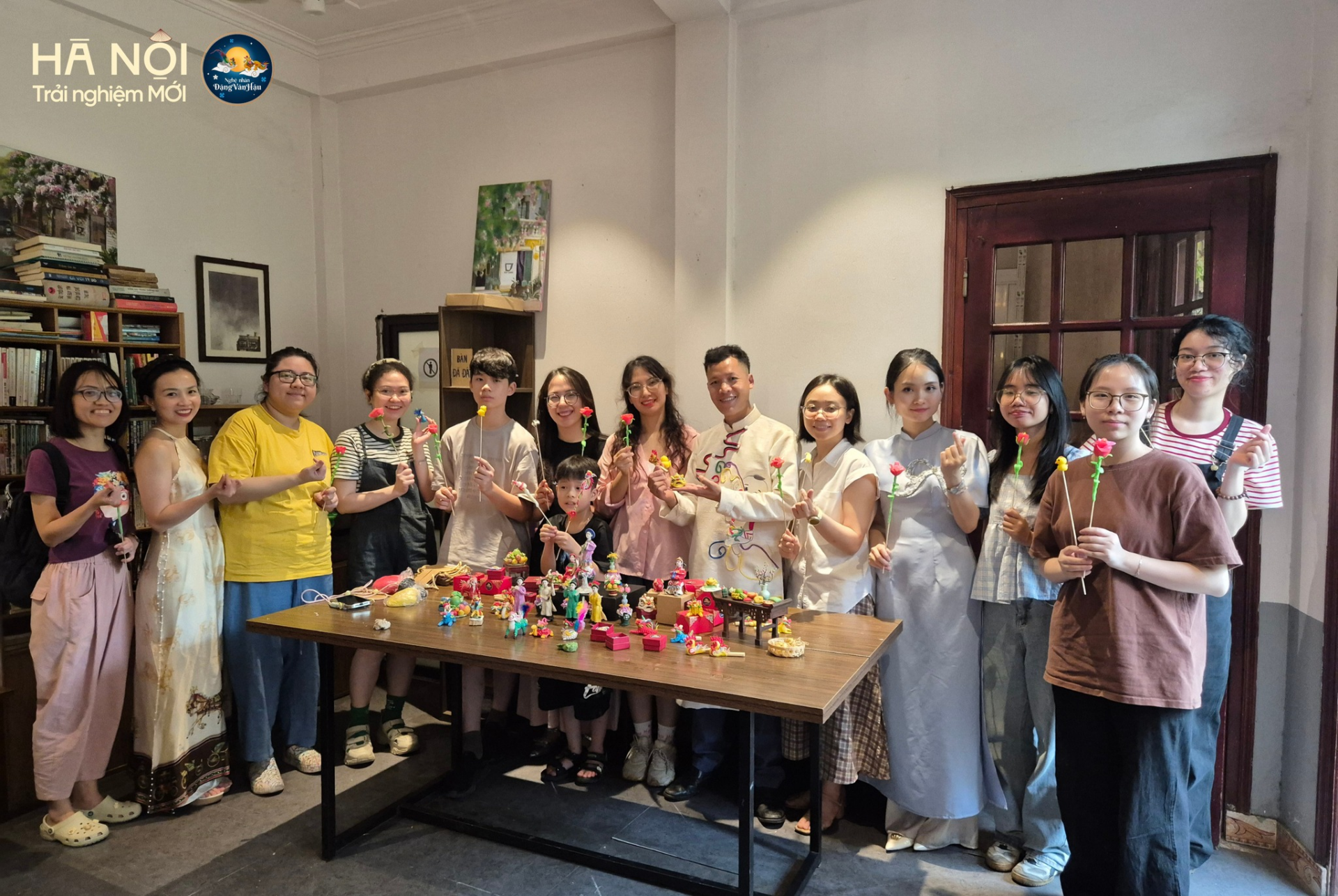 Participants engaging in “tò he” figurine making with the artisan during the “Hương Sắc Kẻ Chợ” walking tour. Source: Internet