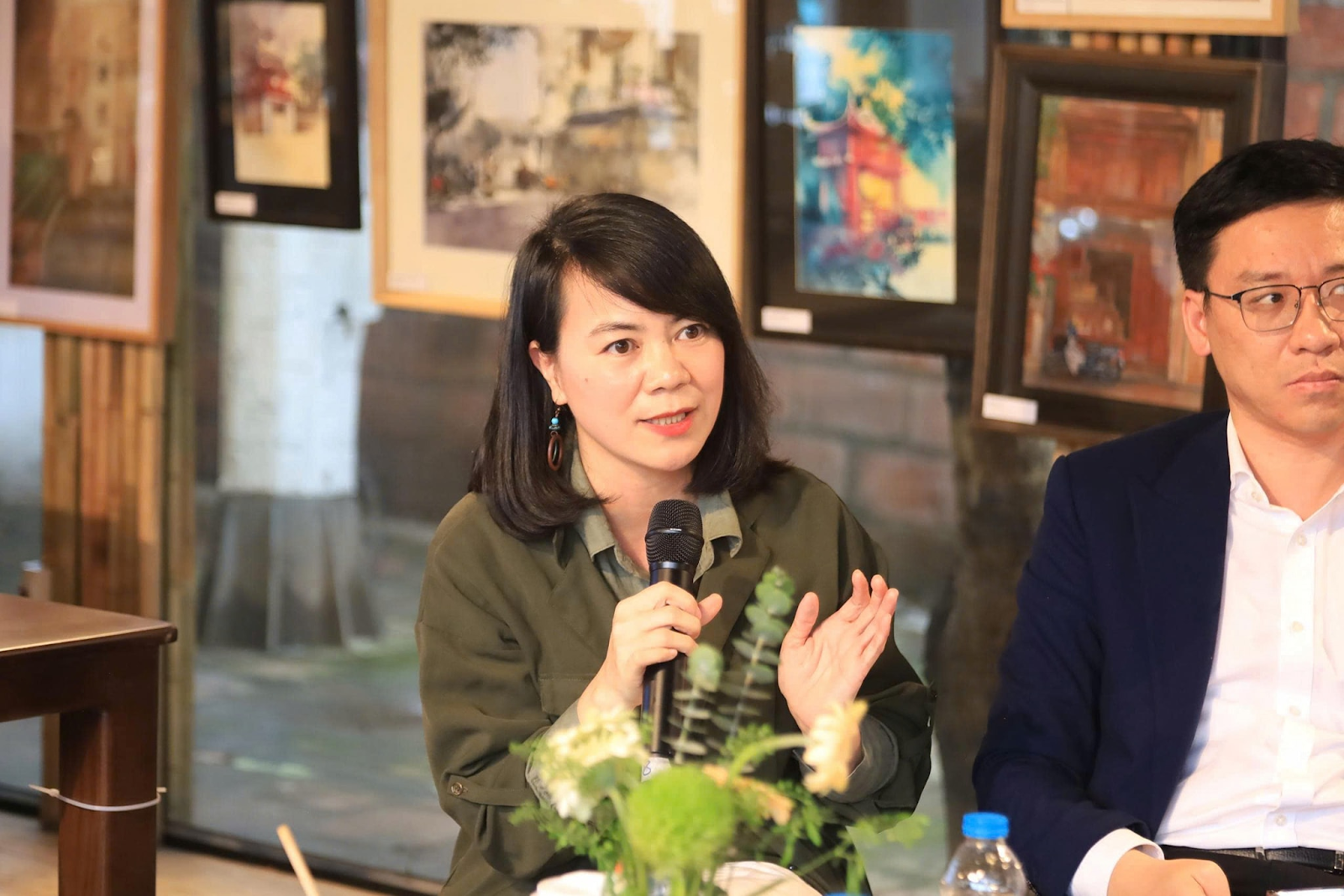 Chị Nguyễn Thị Lệ Quyên, Giám đốc Trung tâm Xúc tiến và Quảng bá Di sản Văn hoá Phi vật thể Việt Nam (VICH) chia sẻ về mối quan hệ giữa nghệ nhân và cộng đồng. (Ảnh: BTC)