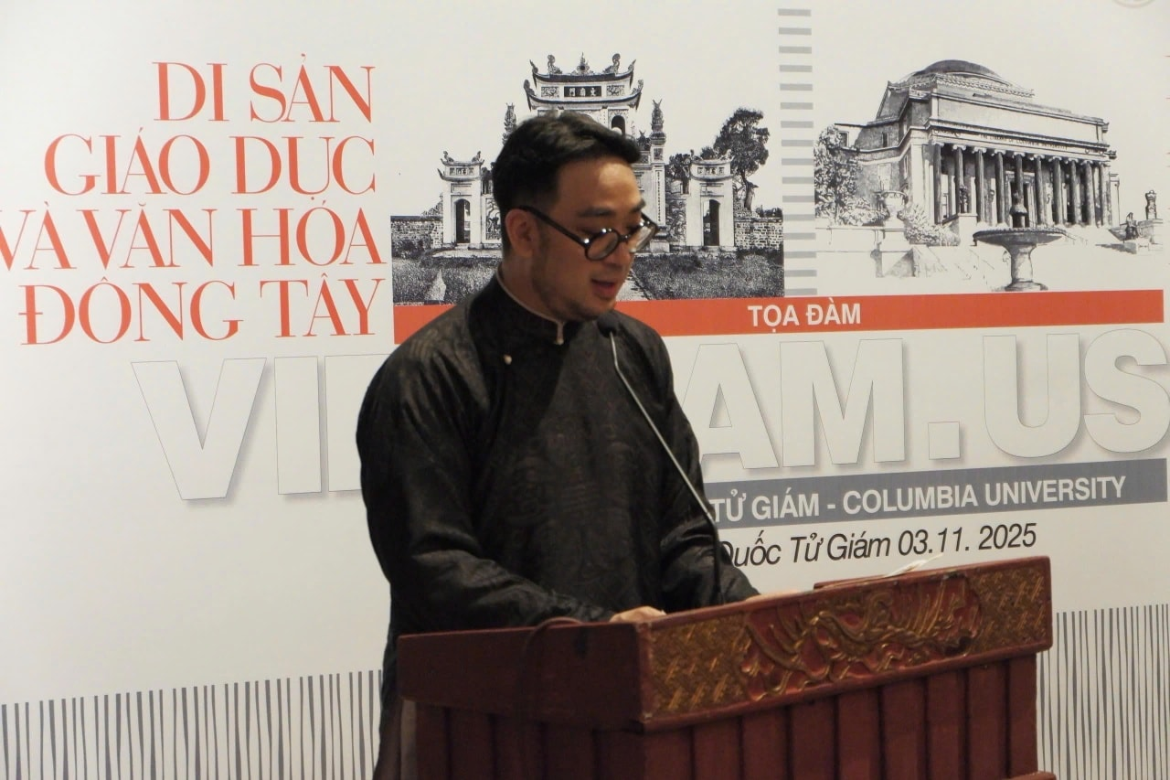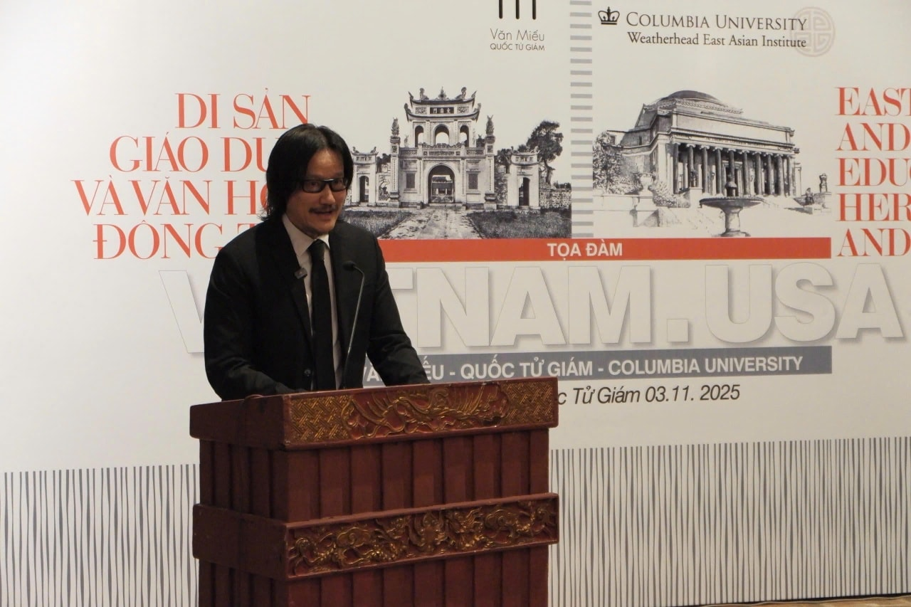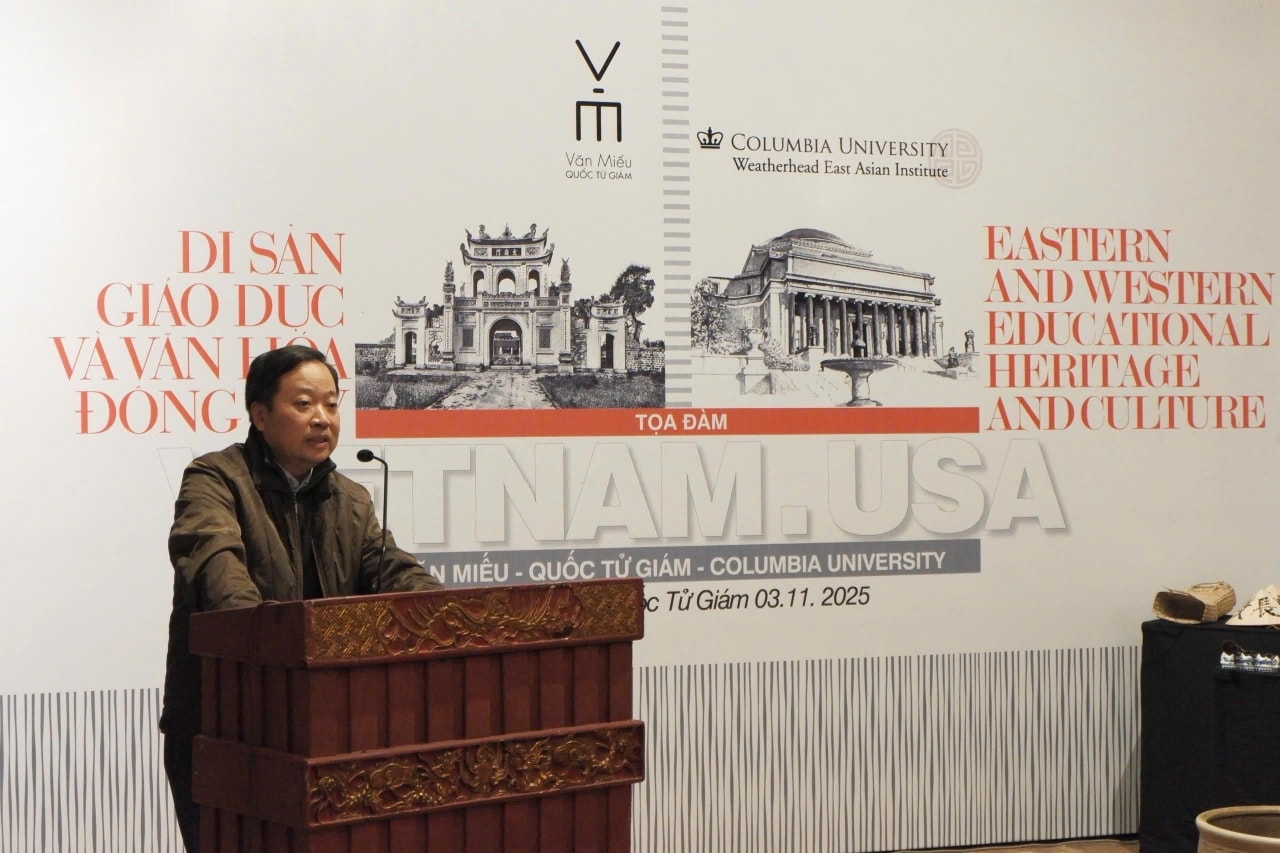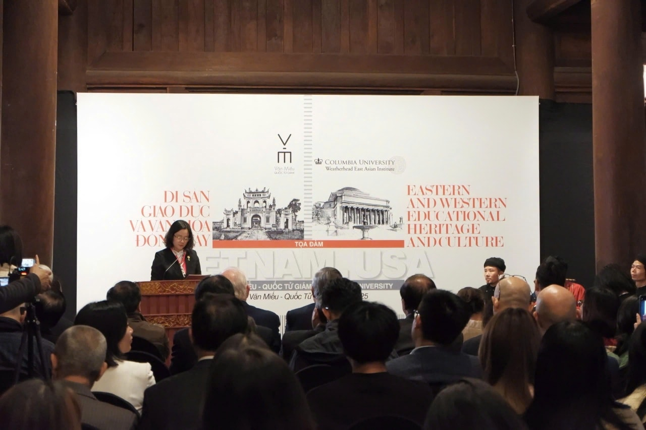 Sáng ngày 03/11/2025 tại Nhà Thái Học – Quốc Tử Giám, tọa đàm “Di sản giáo dục và văn hóa Đông – Tây” diễn ra trong bầu không khí học thuật cởi mở với sự có mặt các chuyên gia Việt Nam và quốc tế. Sự kiện mở ra cuộc trao đổi độc đáo giữa hai biểu tượng giáo dục: Văn Miếu – Quốc Tử Giám đại diện cho nền giáo dục Nho học phương Đông và Đại học Columbia (Hoa Kỳ) ghi dấu tư duy khai phóng của phương Tây.