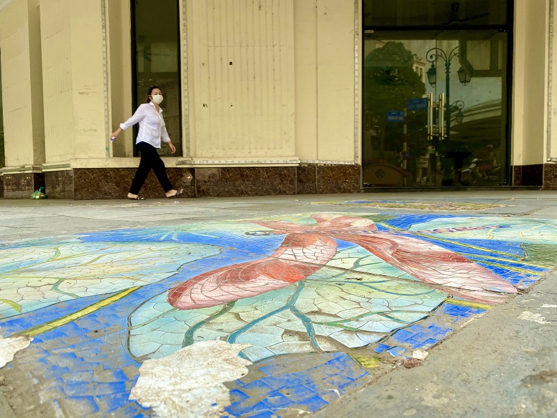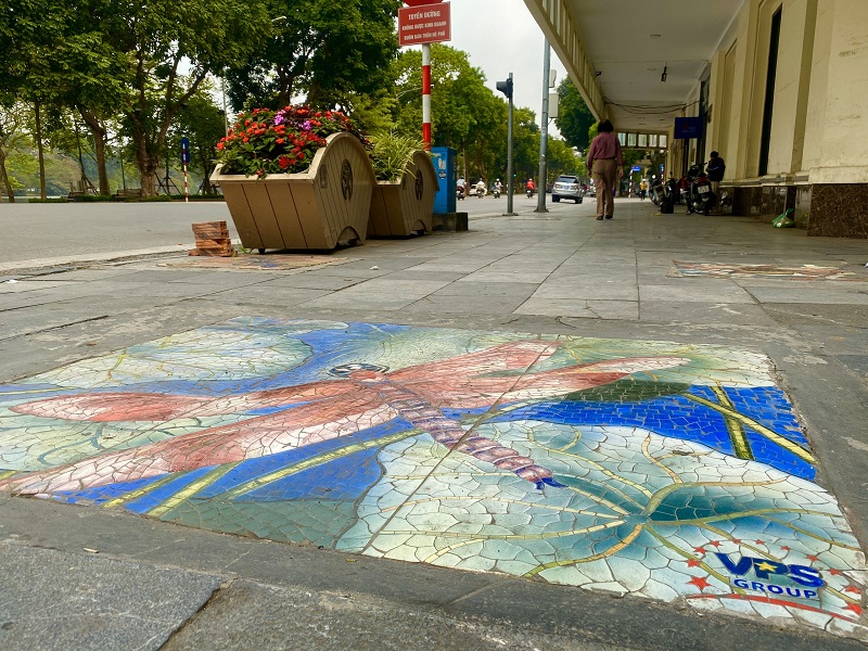 Những nắp cống, hố ga trên đường Đinh Tiên Hoàng, Tràng Tiền (Hoàn Kiếm, Hà Nội) được mặc “áo mới” đa sắc màu bằng bức tranh nghệ thuật trang trí Mosaic gốm.