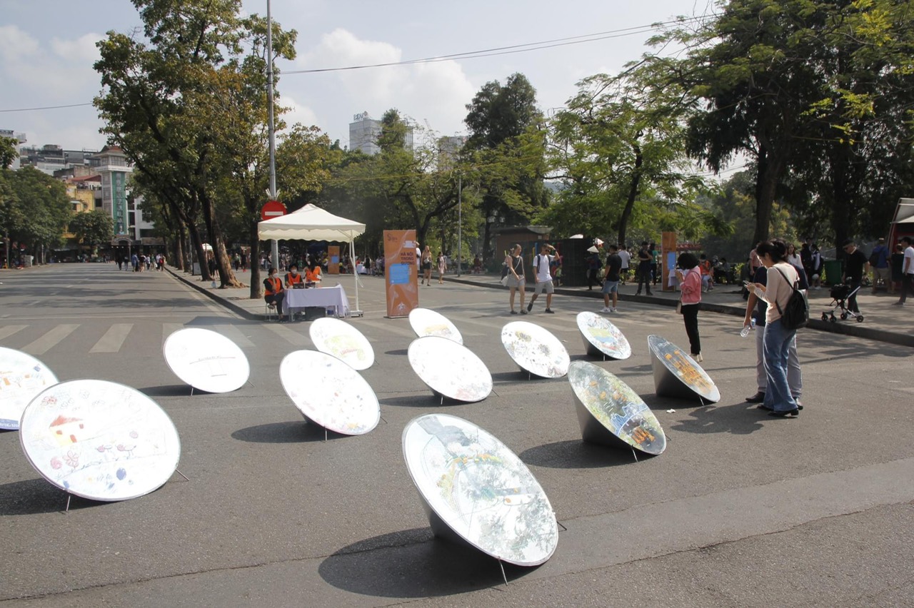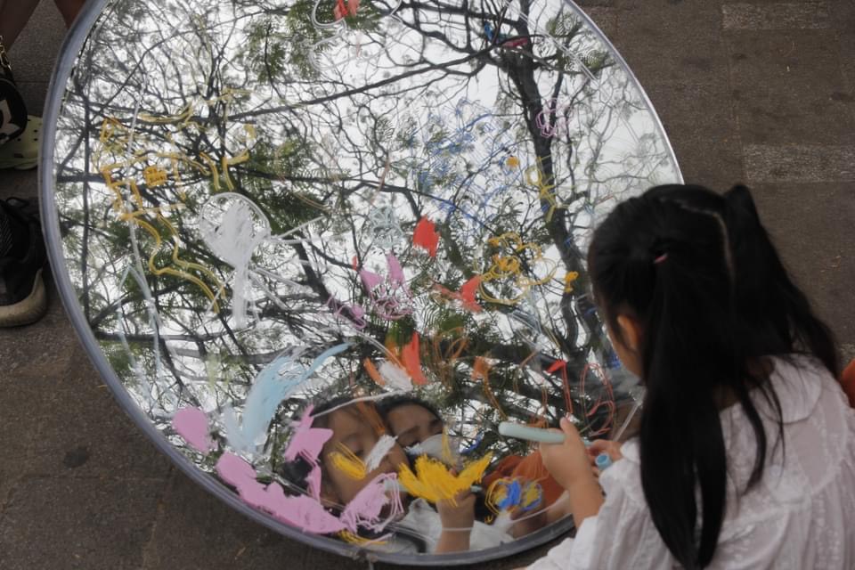 Từ 9h00 đến 22h00 các ngày từ 11 đến 13/11/2022 tại phố đi bộ Hồ Gươm, gần quảng trường Đông Kinh Nghĩa Thục đã diễn ra không gian sắp đặt “Hà Nội trong gương” của Tòhe.