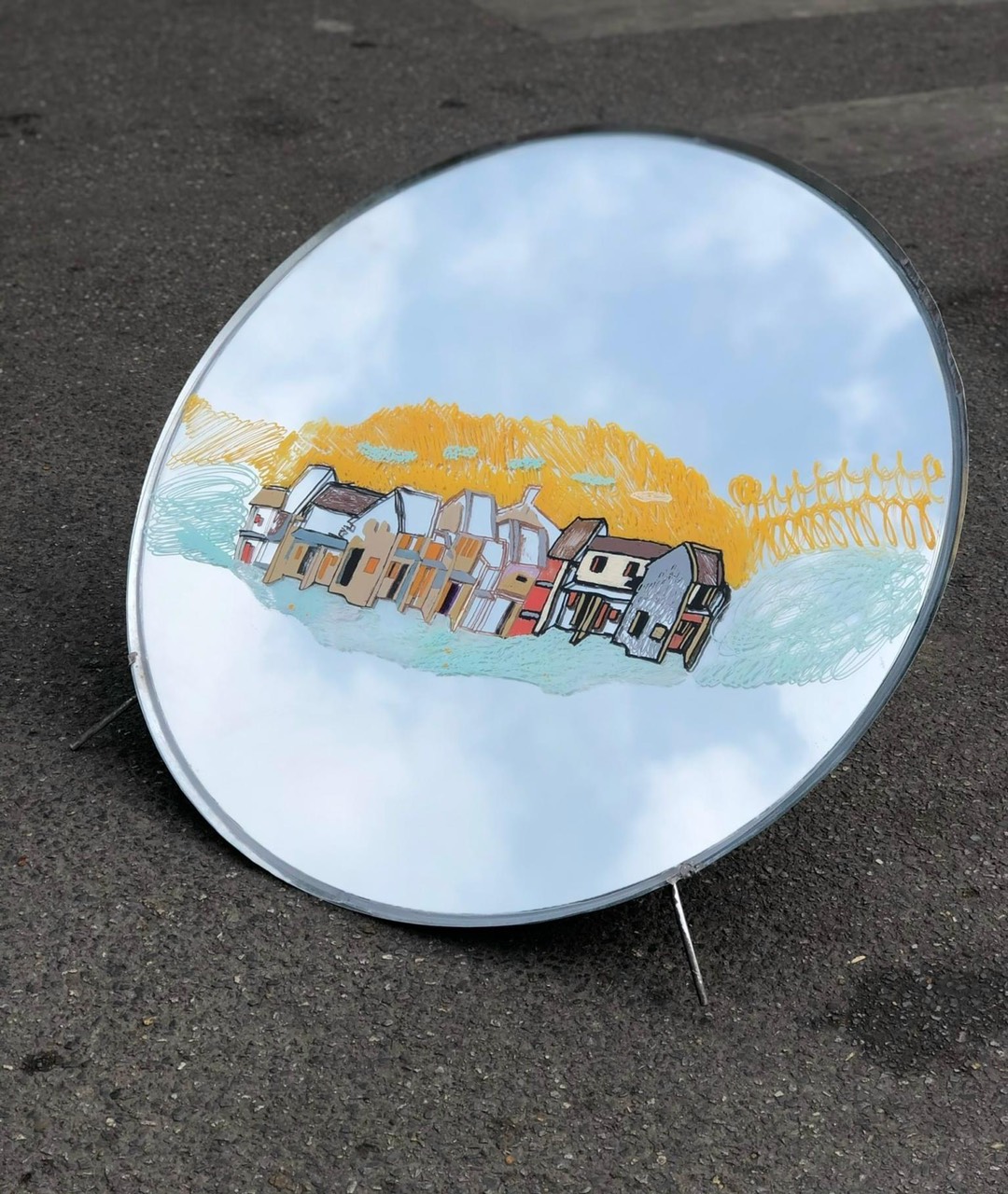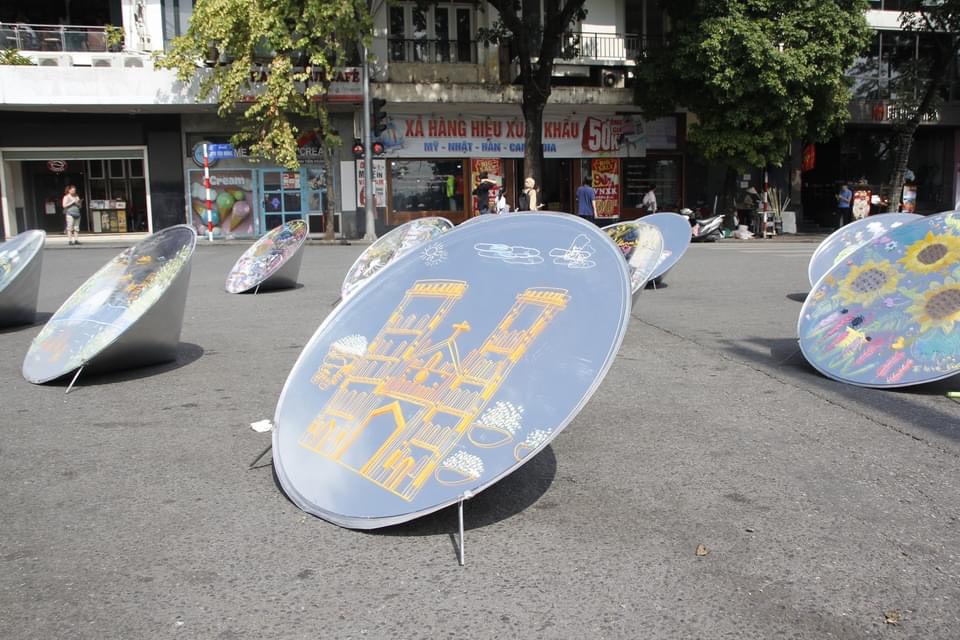 Sắp đặt “Hà Nội trong gương” của Tòhe được lấy ý tưởng từ sự phản chiếu không gian qua khối gương được tạo hình từ chiếc nón lá truyền thống của Việt Nam. Trên những tấm gương, bên cạnh các nét vẽ tương tác của người tham gia sự kiện, là11 bức tranh danh lam thắng cảnh đặc trưng của Thủ đô được thực hiện bởi các Nghệ sĩ tại Lớp Coaching nghệ thuật Tohe Fun./.