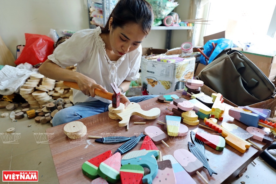 Hiện nay, khách hàng mua những sản phẩm đồ chơi từ gỗ tái chế của Hảo chủ yếu là các trường mầm non mua làm giáo cụ trực quan dạy cho trẻ, phụ huynh mua cho bé và số ít là giới trẻ mua trang trí nhà cửa. Giá trung bình mỗi sản phẩm dao động từ 50 đến 300 nghìn đồng./.