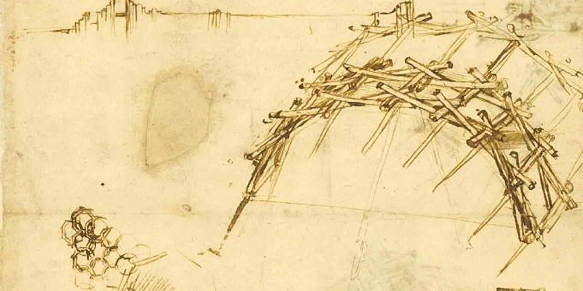 Bản phác thảo cầu Leonardo Da VinciKỹ thuật này được phát hiện lại và chính thức hóa bởi kiến trúc sư và kỹ sư Graham Brown vào những năm 1980, người đã đăng ký nhãn hiệu “khung đối ứng” lấy cảm hứng từ cách thức các thanh kết cấu hỗ trợ lẫn nhau. Ông là người tiên phong trong việc sử dụng các cấu trúc RF và chứng minh cách thức các thanh kết cấu gỗ hoặc thậm chí là thép đơn giản có thể tạo ra những thiết kế phức tạp nhưng chính xác về mặt hình học.