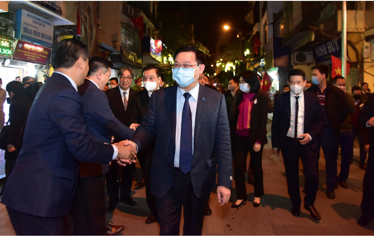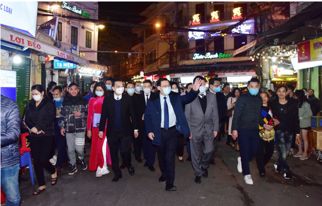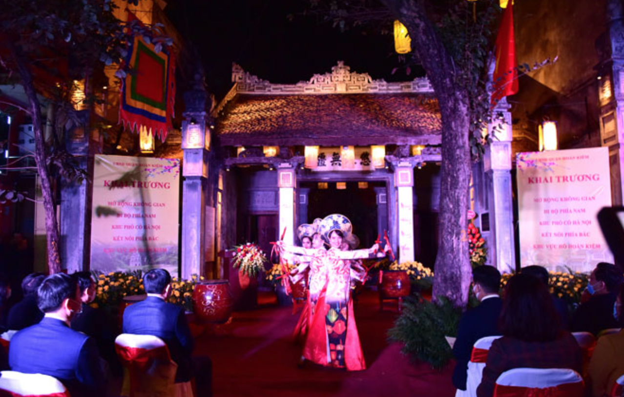 Tối 31-12-2020, UBND quận Hoàn Kiếm (Hà Nội), tổ chức lễ khai mạc không gian đi bộ phía Nam khu phố cổ kết nối phía Bắc khu vực hồ Hoàn Kiếm tại đình Kim Ngân (số 42-44 Hàng Bạc).