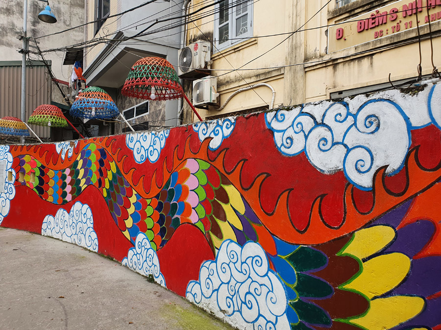 Ngoài việc tận dụng nhiều nguyên liệu độc đáo để trang trí những con ngõ, người dân Hà Nội còn biến những bức tường có phần đơn điệu trở nên màu sắc, ý nghĩa bằng các tác phẩm bích họa sáng tạo.