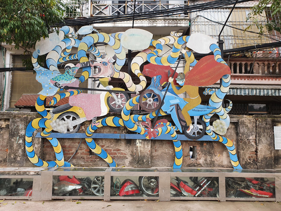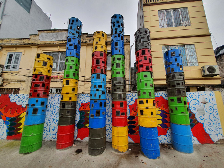 Cũng là các tác phẩm từ phế liệu, 16 tác phẩm nghệ thuật sắp đặt khác nhau của 16 nghệ sĩ tình nguyện từ Trường Đại học Mỹ thuật Việt Nam đã góp phần làm đẹp con đường ven sông Hồng (thuộc phường Phúc Tân, quận Hoàn Kiếm), vốn được biết đến với cái tên: “Bãi rác Phúc Tân” hay “mặt sau của thành phố”.