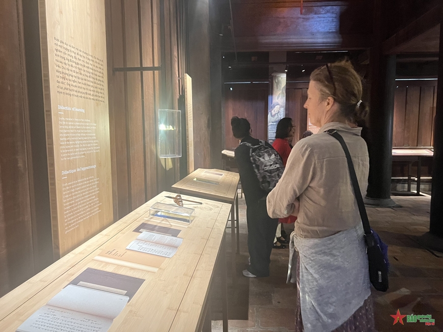 Còn bà Amélie, đại diện cho đơn vị thiết kế Beau Design thực hiện dự án trưng bày “Khơi nguồn Đạo học” cho biết: Nội dung thiết kế trưng bày tập hợp tối đa các dữ liệu lịch sử và sắp xếp các không gian nhằm truyền tải được các giá trị của tri thức và ký ức. Với phong cách thể hiện mang tính đương đại, trang trọng và bền vững, phương án thiết kế hướng tới tôn vinh chủ đề giáo dục thông qua các hiện vật và các giá trị kết nối cần truyền tải với nội dung gần gũi nhất tới công chúng. Các nội dung trưng bày đều hướng tới khách tham quan, đặc biệt là giới trẻ, thông qua các hình thức thể hiện có tính tương tác.