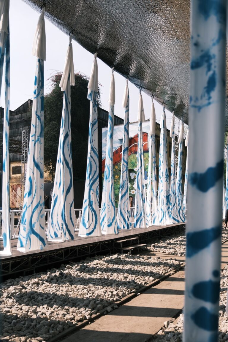 “Bến Chờ” đặt tại một đoạn đường ray trong nhà máy xe lửa Gia Lâm, theo một hình thái vừa hoài niệm, vừa trẻ trung phù hợp với xu hướng của Gen Z. Kiến trúc sư Nguyễn Quang Thạch đã thiết kế “Bến Chờ” với những đường nét mảnh mai nhất, tiết giảm nhất và chất liệu sử dụng làm sao để nó trở nên tan biến nhất.