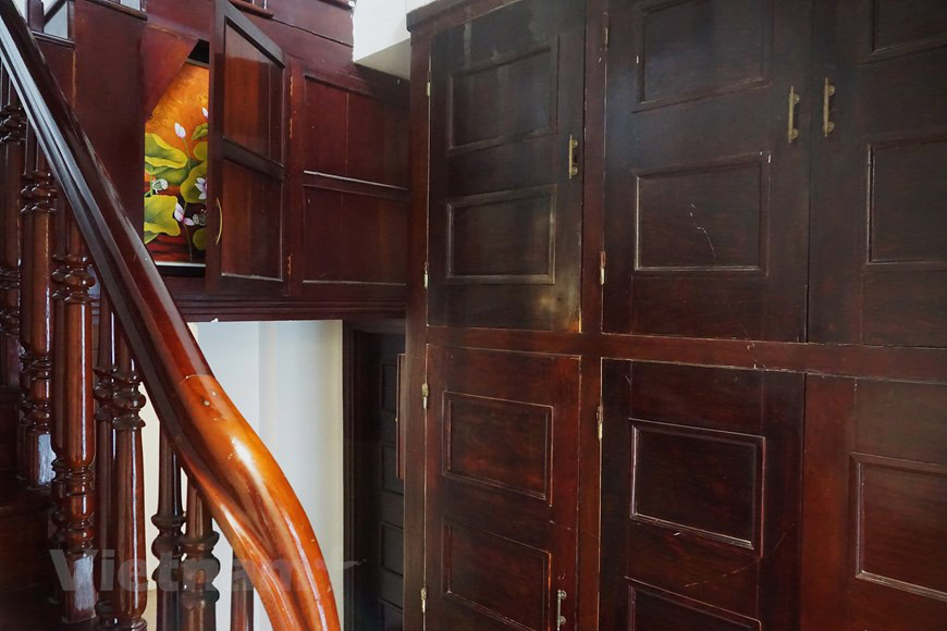 Hệ thống tủ gỗ âm tường gần như được giữ nguyên bản.