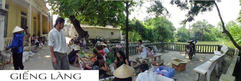 Đây là không gian đa chức năng, vừa là nơi họp chợ, vừa là không gian cộng đồng tụ họp dân làng. Từ xưa, người dân trong làng muốn đi chợ phải đi cách làng 3km. Sau khi giếng làng được tôn tạo, chợ tạm đã mọc lên sát cạnh. Nét đặc trưng ở chợ này là người dân đi chợ lớn bán hàng không hết sẽ mang về chợ tạm bán cho dân trong làng. Chính vì vậy mà chợ họp khá muộn và kết thúc cũng muộn. Mặt hàng rất đơn sơ, dưới bóng cây Bàng râm mát, nó mang dáng dấp một nơi để bà con ra trò chuyện nhiều hơn.