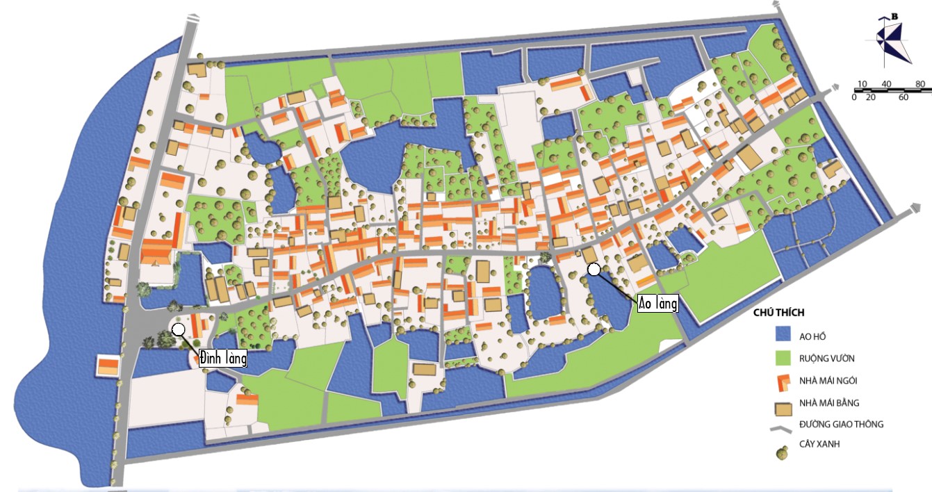 - Không gian trong làng: Là tổng hòa của không gian ở, không gian giao thông, và không gian cộng đồng