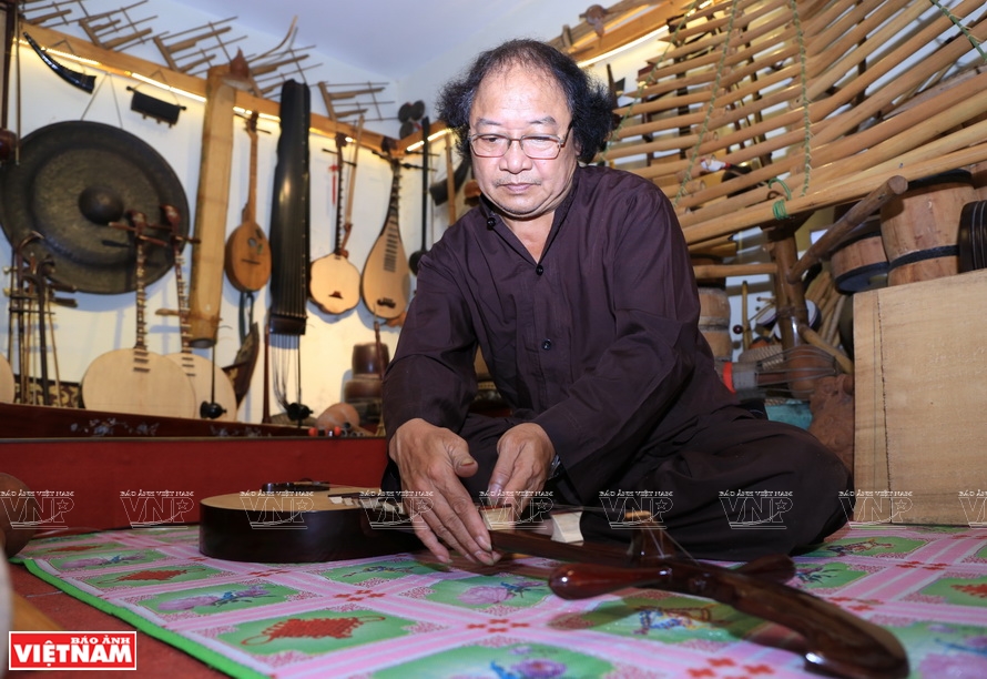 Không chỉ biết chế tác đàn, ông Khánh đồng thời còn có thể thể hiện những giai điệu âm nhạc cổ truyền của Việt Nam trên chính những cây đàn do mình chế tác.