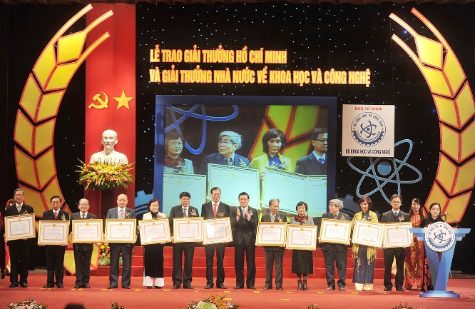 TS Trần Quang Ngọc (thứ ba từ trái sang) nhận Giải thưởng Hồ Chí Minh về khoa học và công nghệ.