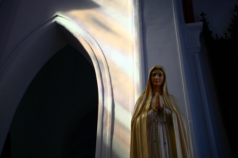 Trước Nhà thờ có một quảng trường nhỏ với tượng Đức Mẹ, làm tăng thêm giá trị cảnh quan cho công trình.