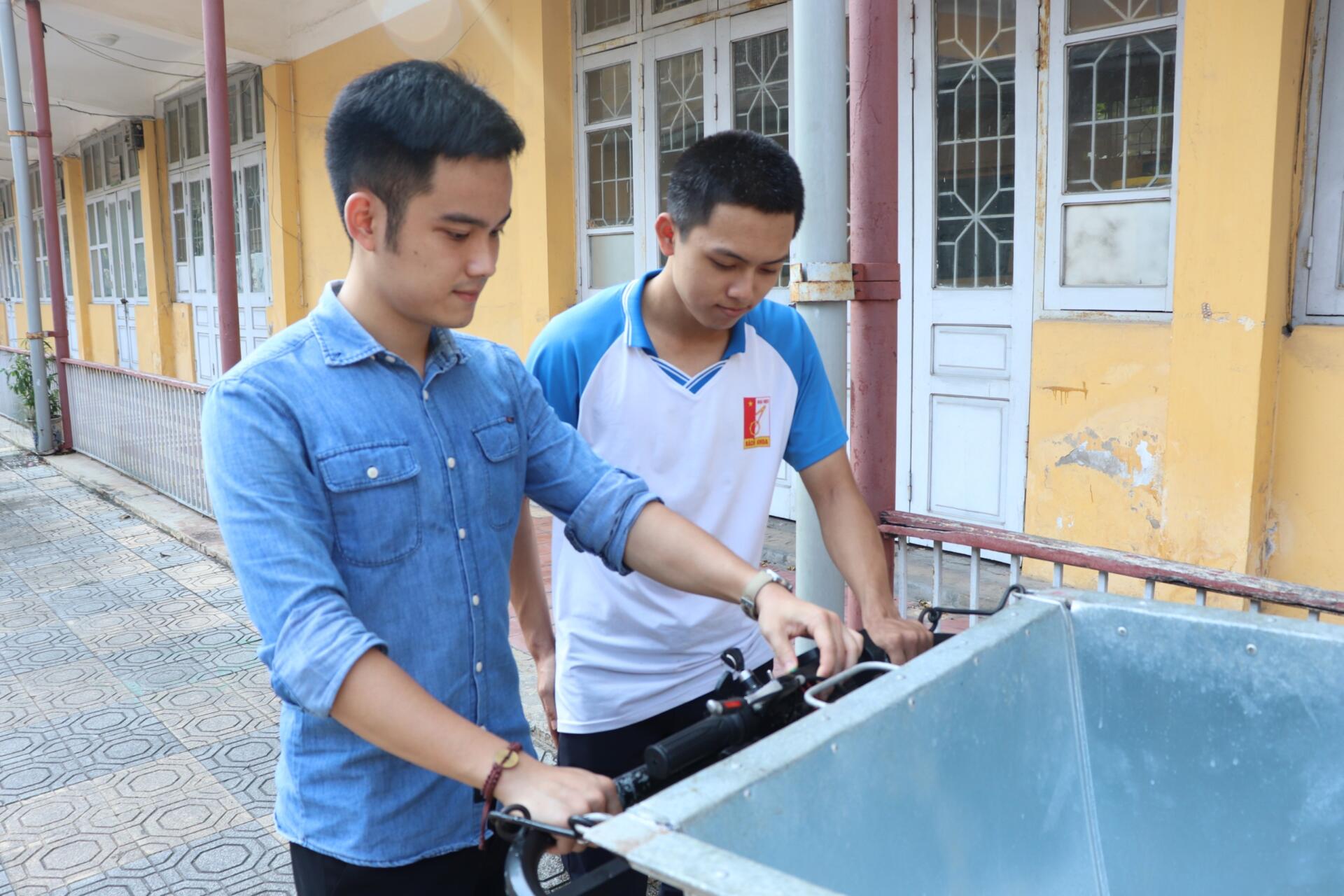 Chính từ sự đồng cảm đó, chàng sinh viên Nguyễn Tiên Tiến nhen nhóm ý tưởng và cùng nhóm bạn là Dương Anh Minh (SN 1997), Lê Chí Tuyền (SN 2001) và Trịnh Cao Dũng (SN 1995) thực hiện dự án thay thế xe rác đẩy tay bằng xe điện sử dụng tay ga, có công nghệ hỗ trợ định vị lái bằng la bàn.