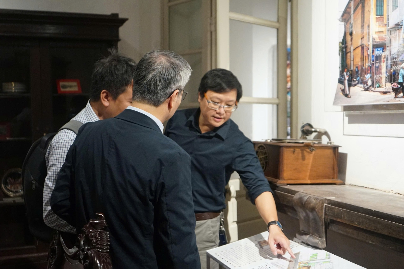 Để tiếp nối câu chuyện của triển lãm, buổi tọa đàm sáng 15/11 đã mở ra cuộc trao đổi sâu sắc giữa nghệ sĩ Nguyễn Thế Sơn, kiến trúc sư Trần Huy Ánh và nhà nghiên cứu Phạm Minh Quân, thu hút đông đảo công chúng quan tâm đến di sản và nghệ thuật đương đại. Các diễn giả lần lượt chia sẻ về hành trình tạo nên dự án “Những ngã rẽ”, từ ý tưởng ban đầu, quá trình chọn biệt thự, bóc tách lớp tư liệu đến kỹ thuật nhiếp ảnh phù điêu. Kiến trúc sư Trần Huy Ánh trình bày phương pháp phân tích bản đồ và đọc hình học kiến trúc, trong khi nhà nghiên cứu Phạm Minh Quân nhấn mạnh vai trò của cảm thức đô thị và sự giao thoa giữa dữ liệu, di sản và mỹ cảm.