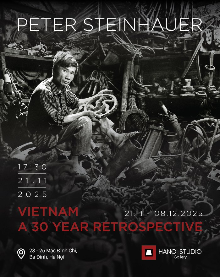 Triển lãm “Vietnam – A 30 Year Retrospective” của nhiếp ảnh gia người Mỹ Peter Steinhauer đang diễn ra tại Hanoi Studio Gallery (23 – 25 Mạc Đĩnh Chi, Hà Nội) đến hết ngày 08/12/2025. Với 59 tác phẩm được tuyển chọn từ hàng nghìn bức ảnh thực hiện trong ba thập niên, triển lãm phác họa một Việt Nam sâu sắc, dung dị và giàu nhân văn – vượt khỏi những khuôn hình quen thuộc về chiến tranh tại Việt Nam.