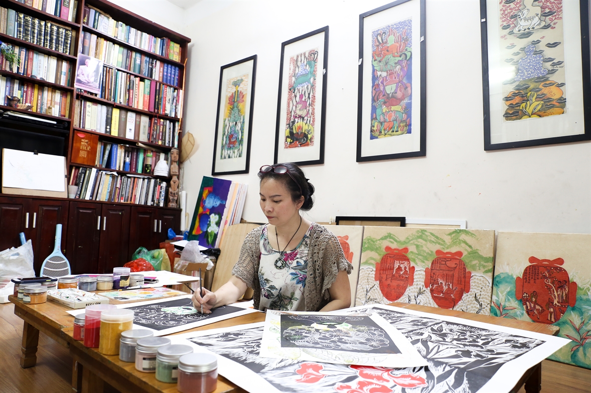 ![]() PGS Trang Thanh Hiền hướng dẫn các em nhỏ làm quen với dòng trang dân gian. Ảnh: NVCC ![]() ![]() PGS Trang Thanh Hiền đang hướng dẫn các em nhỏ cách in dòng trang Kim Hoàng tại triển lãm về tranh dân gian. (ảnh: NVCC) ![]() Thông qua Triển lãm về tranh dân gian, PGS Trang Thanh Hiền mong muốn để các em nhỏ hiểu thêm về mỹ thuật cổ của người Việt. Ảnh: NVCC ![]() PGS Trang Thanh Hiền hướng dẫn du khách nước ngoài vẽ tranh dân gian Việt Nam. Ảnh: NVCC ![]() PGS Trang Thanh Hiền đang chia sẻ với các thành viên Hội Nữ trí thức Việt Nam về tranh dân gian. Ảnh: NVCC |