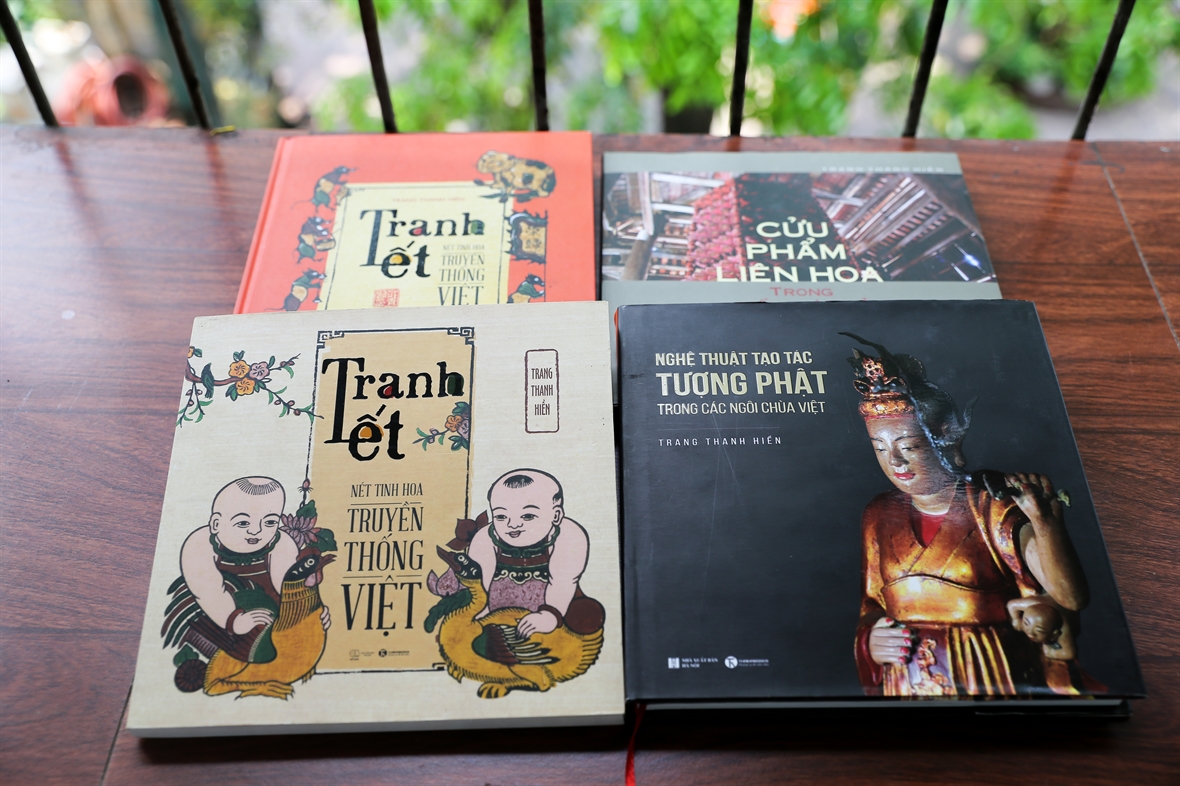 ![]() PGS.TS Trang Thanh Hiền được biết đến là một trong những người phụ nữ đầu tiên thành công với con đường nghiên cứu lịch sử mỹ thuật tôn giáo. Ảnh: Khánh Long/VNP ![]() Những công trình nghiên cứu được xuất bản thành sách của PGS.TS Trang Thanh Hiền đã giúp đưa mỹ thuật cổ truyền thống gắn với tôn giáo ![]() Cả 4 cuốn sách nghiên cứu về mỹ thuật truyền thống – dân gian được xuất bản của PGS.TS Trang Thanh Hiền đều nhận được giải thưởng của Hội Xuất bản Việt Nam. Ảnh: Khánh Long/VNP ![]() PGS Trang Thanh Hiền trong buổi hướng dẫn in ấn cho trường tiểu học Kim Liên, Đống Đa, Hà Nội. Ảnh: NVCC |