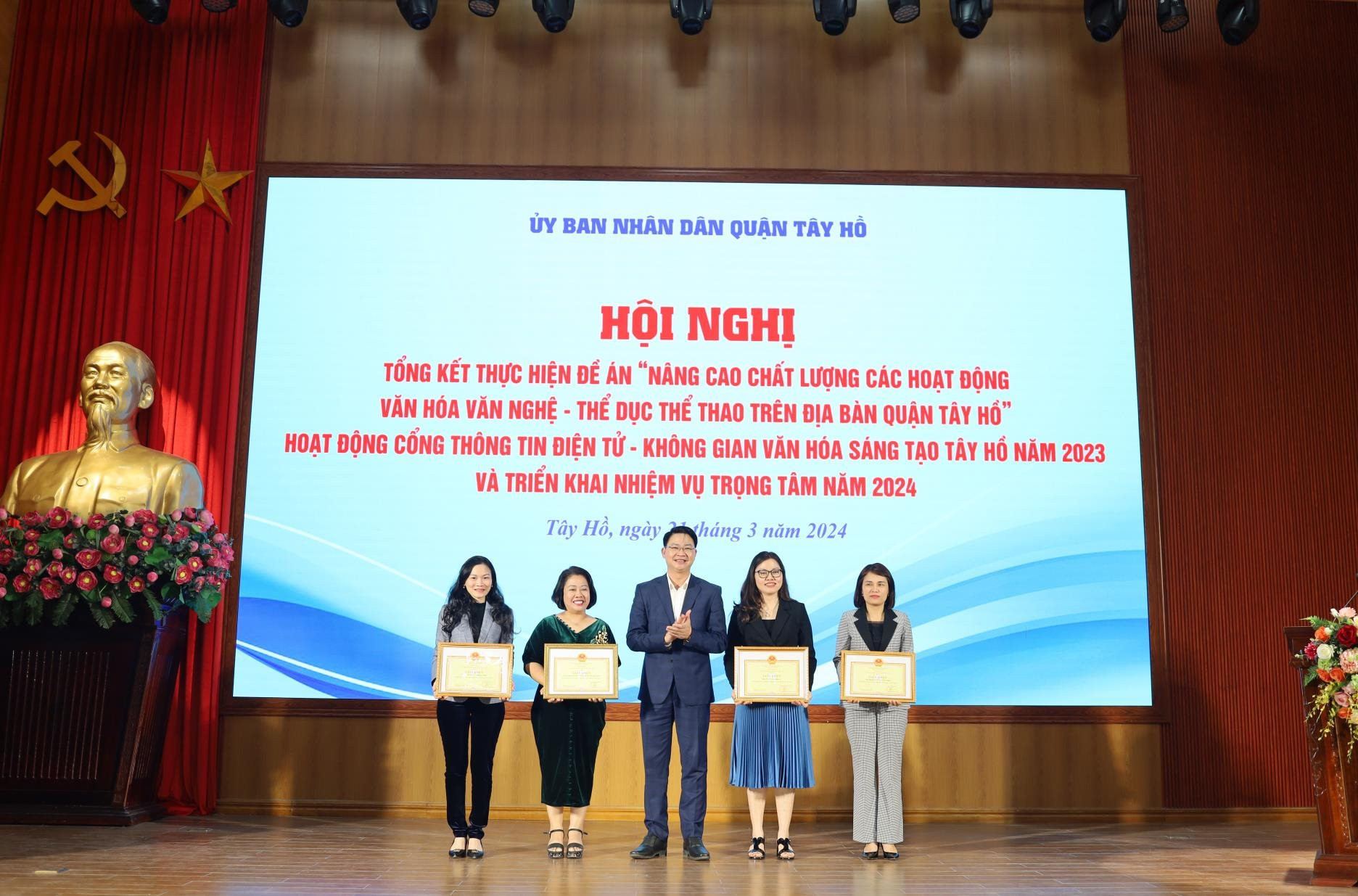 Cũng tại hội nghị, lãnh đạo quận Tây Hồ đã biểu dương và khen thưởng cho các tập thể và cá nhân năm 2023: