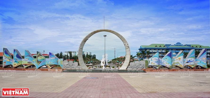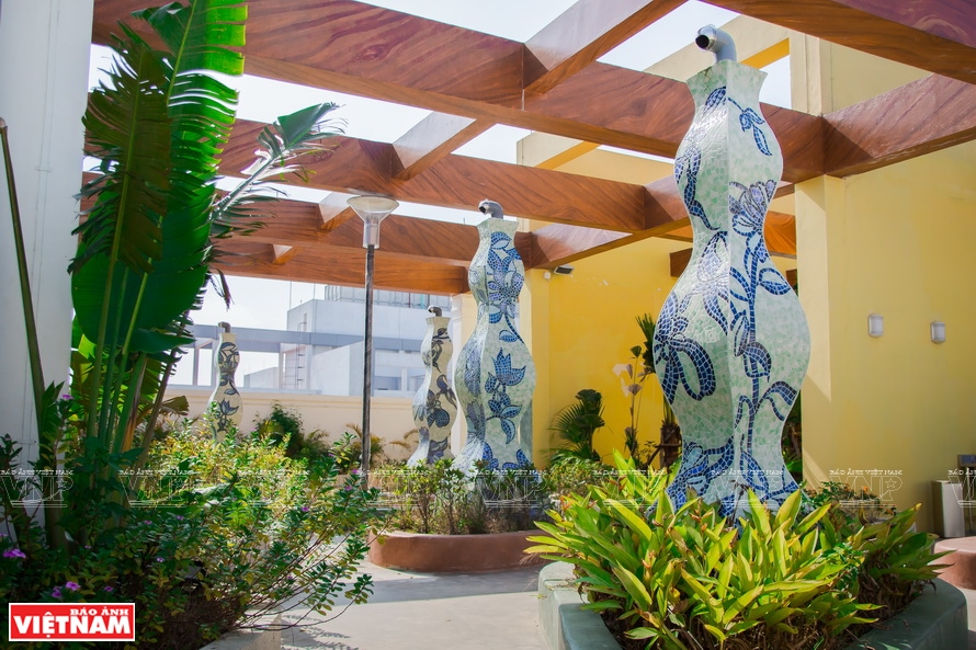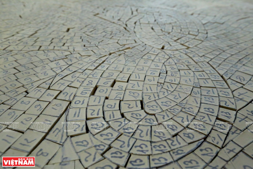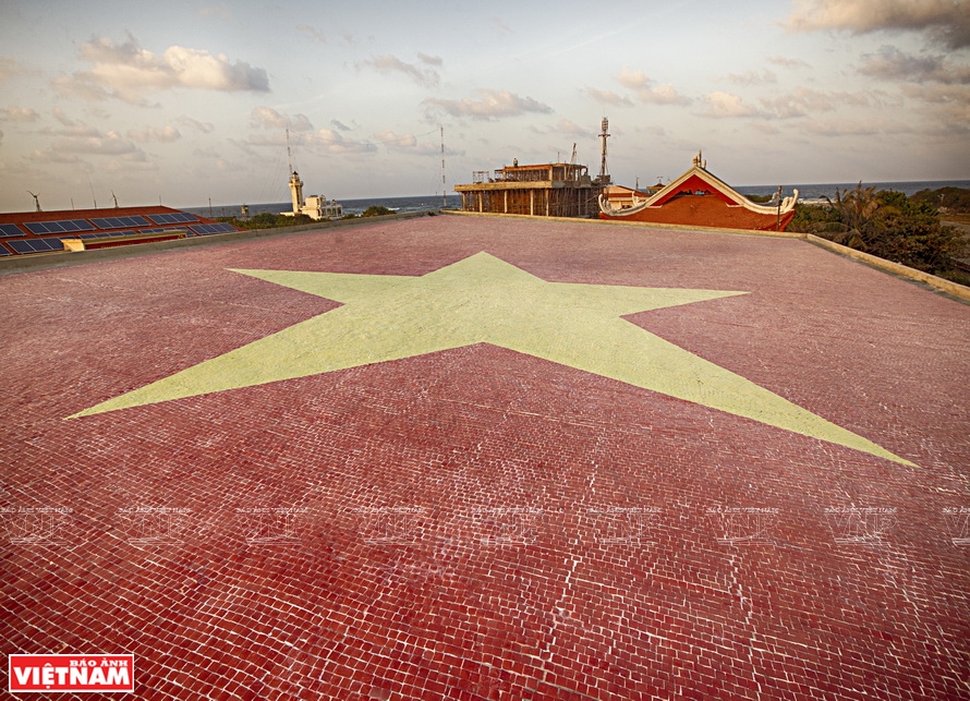 ![]() Tranh ghép gốm lá cờ Tổ quốc có diện tích 303,8 m2 ghép từ hơn 2 triệu viên gốm đặt trên nóc nhà hội trường của đảo Trường Sa lớn (huyện đảo Trường Sa, Khánh Hòa). Ảnh: VNP