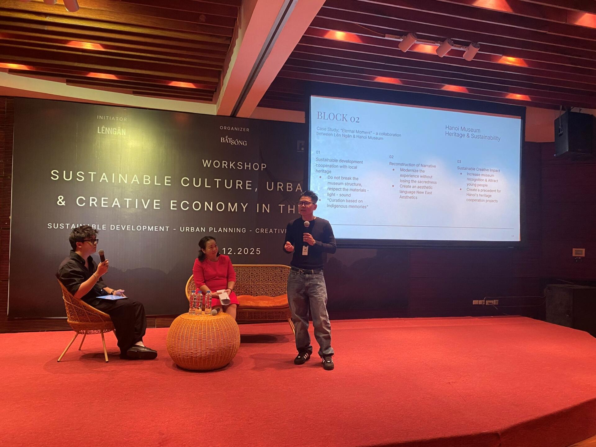 Không khí học thuật được nối dài trong Workshop Sustainable Culture, Urban Futures & Creative Economy in the New East – Hội thảo tập trung vào mối liên hệ giữa văn hóa bền vững, quy hoạch đô thị tương lai và mô hình kinh tế sáng tạo, với những chia sẻ mở rộng góc nhìn về văn hóa và sáng tạo.