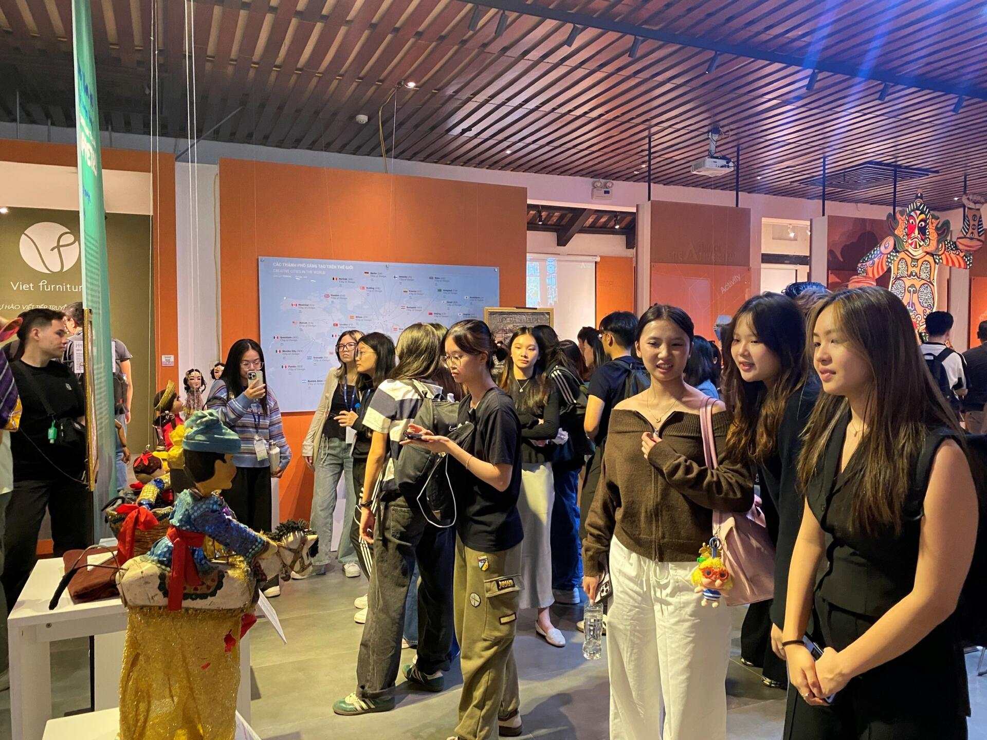 Ở điểm dừng chân cuối cùng, đoàn ghé thăm Trung tâm Điều phối Hoạt động Sáng tạo Hà Nội. Tại đây, sinh viên tham quan các mô hình và không gian sáng tạo đang được trưng bày, qua đó có thêm góc nhìn về hoạt động sáng tạo đương đại tại Hà Nội – Thành phố Sáng tạo của UNESCO.
