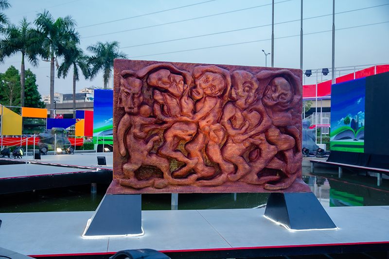 Với ý nghĩa đó, 50 tác phẩm từ nhiều chất liệu khác nhau như đá, gỗ, đồng, mang tên gọi “Thiên mệnh,” “Nhân linh,” “Thông giao,” “Hồng hoang,” “Thiên giới,” “Nghĩa sinh”… đã mang đến cho người yêu nghệ thuật những cái nhìn hoàn toàn mới về nghệ thuật điêu khắc.