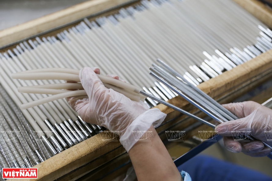 ![]() Nhà vườn ươm nguyên liệu cây giống rau củ quả là ý tưởng của anh Lê Văn Tám – Giám đốc Hợp tác xã Sông Hồng để tạo ra sản phẩm ống hút rau củ quả thân thiện với môi trường. Ảnh: Khánh Long ![]() Dây chuyền sản xuất ống hút từ rau củ quả của Hợp tác xã Sông Hồng. Ảnh: Khánh Long ![]() Công đoạn làm tơi xốp các tinh bột từ rau củ quả trước khi đem vào máy hấp. Ảnh: Khánh Long ![]() Rau củ quả sau khi được nghiền thành tinh bột sẽ được đem vào máy sấy hấp ở nhiệt độ cao. Ảnh: Khánh Long ![]() Các công đoạn luôn được theo dõi, kiểm tra sát sao, nhằm đảm bảo vệ sinh an toàn khi đến tay người dùng. Ảnh: Khánh Long ![]() Tinh bột sau khi hấp sẽ được cô đặc từ máy nghiền. Ảnh: Khánh Long ![]() Công đoạn đưa những sản phẩm ống hút qua các thanh kim loại để giữ cho ống hút không bị cong. Ảnh: Khánh Long ![]() Các sản phẩm ống hút từ rau củ quả sẽ được phơi khô trong vòng 24 giờ trước khi đem đóng bao bì. Ảnh: Khánh Long ![]() Hiện nay ống hút Ecos đã được xuất khẩu sang nhiều thị trường nước ngoài như: Hàn, Ba Lan, Singapore, Mỹ. Ảnh: Khánh Long ![]() Nhiều doanh nghiệp kinh doanh nước giải khát, khách sạn, nhà hàng đã hợp tác với Ecos, nhằm hướng tới bảo vệ môi trường và an toàn sức khỏe của người tiêu dùng. Ảnh: Tư liệu |