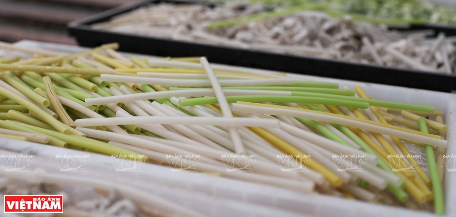 ![]() Hợp tác xã Sông Hồng hiện đang nghiên cứu thêm nhiều nguyên liệu rau củ quả để tạo nên sự phong phú trong mặt hàng ống hút. Ảnh: Khánh Long