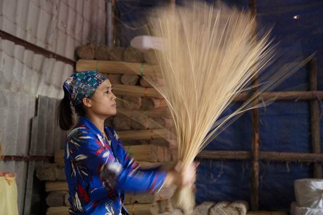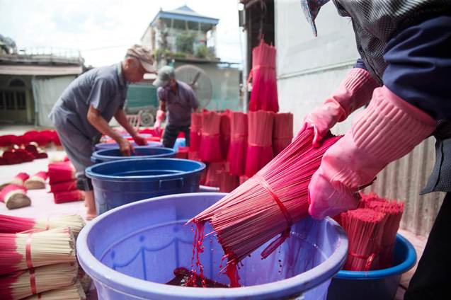 Những que tăm chất lượng thì được mang đi nhuộm chân hương rồi phơi khô, còn những que chất lượng kém hơn thì sẽ dùng để tái chế
