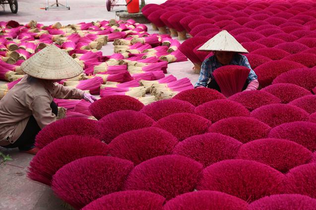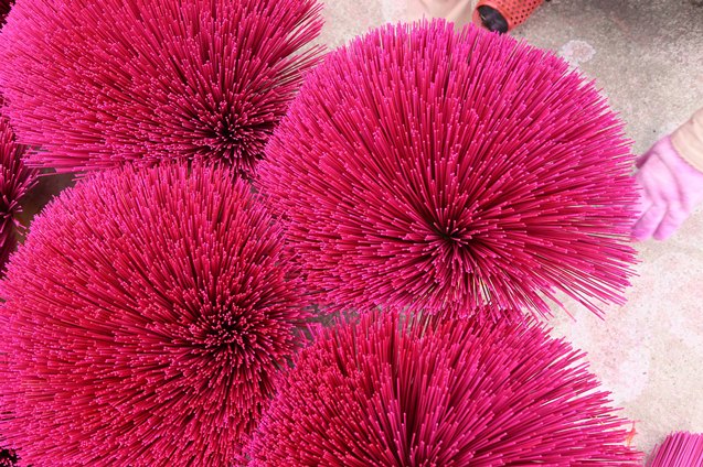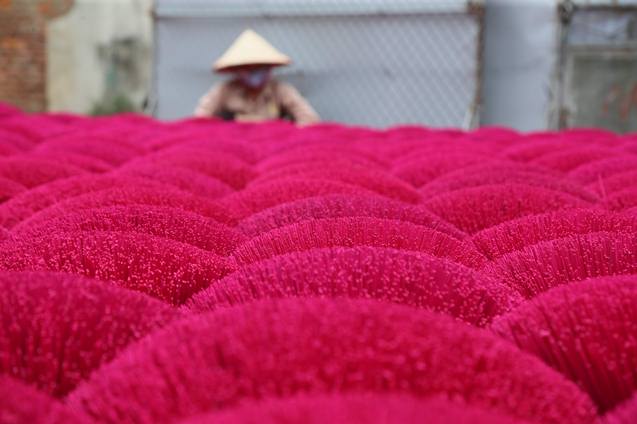 Sắc đỏ rực rỡ dưới nắng ở làng nghề làm hương Quảng Phú Cầu