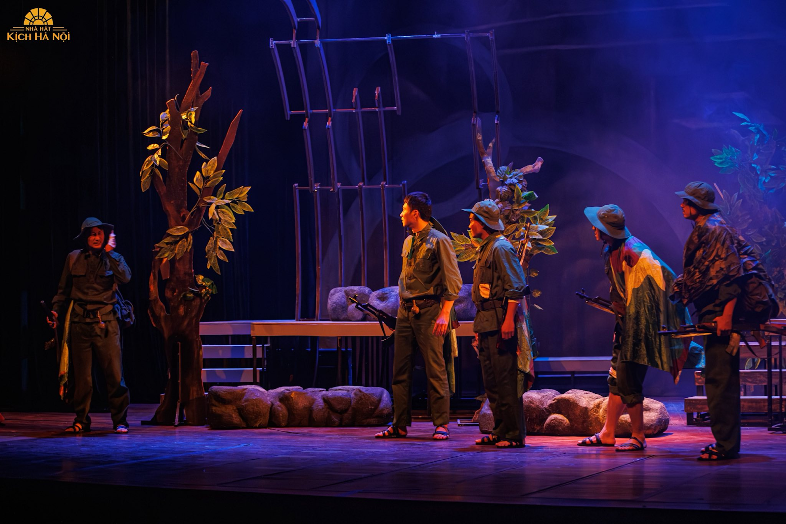 Bài học về lòng dũng cảm và trách nhiệm với quê hương được kể qua hình tượng của nhà binh. (Ảnh: Nhà hát Tuổi trẻ)