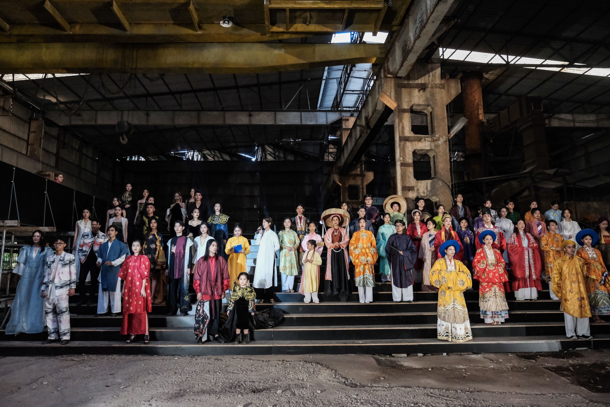 Show thời trang “Vân Long Lưu Vũ” phỏng dựng lại tiến trình biến đổi của cổ phục trong giai đoạn 1900 – 1950 đã thu hút nhiều khán giả trẻ khi diễn ra vào sáng 18/11 tại Nhà máy xe lửa Gia Lâm – Phân xưởng Nóng 1B, Hà Nội.
