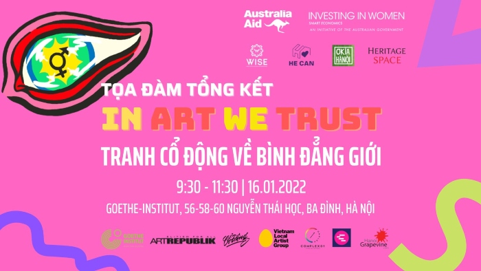 In Art We Trust – Cuộc thi vẽ tranh Cổ động được thiết kế đặc biệt để phát hiện lại tranh Cổ động với vai trò nâng cao nhận thức xã hội về bình đẳng giới và sự cùng tham gia của cộng đồng vào sáng tạo nghệ thuật. Chương trình nằm trong chiến dịch truyền thông He Can do được tài trợ bởi Investing In Women của chính phủ Úc được thực hiện bởi: Wise, Ơ Kìa Hà Nội, Heritage Space.