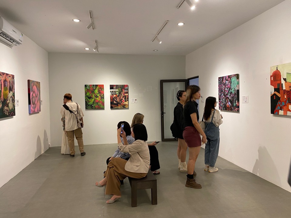 Triển lãm “Chạm một nét hoa” gồm 30 bức hoạ vẽ trên toan tranh tái chế, thể hiện những góc nhìn đa chiều thú vị, đầy tính nghệ thuật và nét đẹp bảo vệ môi trường được khắc họa tỉ mỉ trên khung canvas được ghép từ vải vụn. Mỗi tác phẩm được trưng bày tại triển lãm thể hiện một thế giới, một cá tính giống như phong cách riêng biệt của các thế hệ họa sĩ trẻ Gen Z.